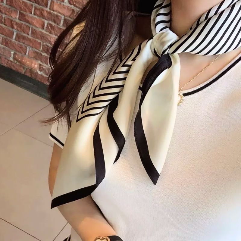 With its black geometric stripes on a white background, this 70x70 cm piece is crafted from premium-quality polyester, finished to evoke the luxurious feel of silk.