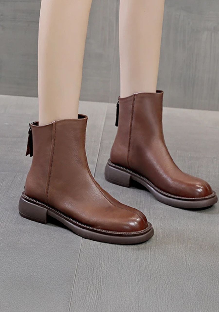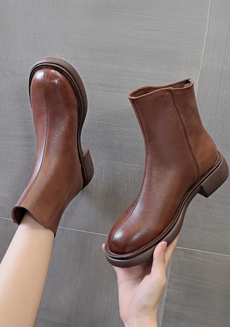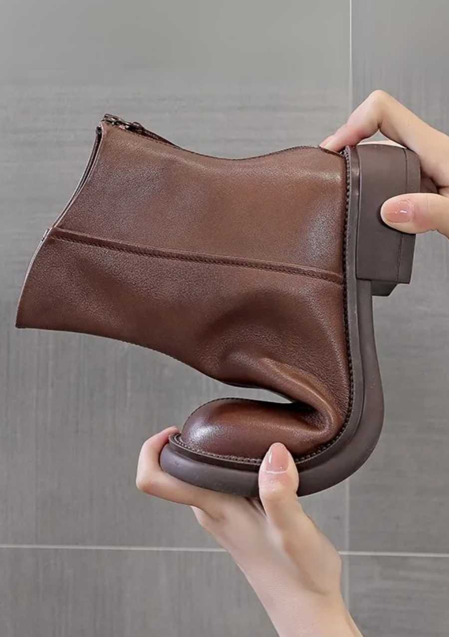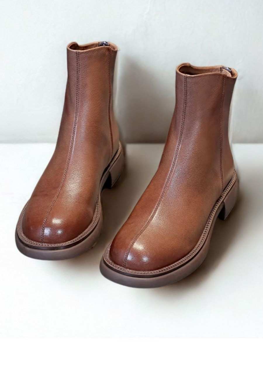 The Gaube Women's Boot in Caramel Synthetic Leather combines minimalist elegance with absolute everyday comfort. With its timeless design and 3.5 cm heel, this model offers practicality and versatility, ideal for those seeking style without compromising on well-being. It features a zipper and a durable sole that ensures stability with every step.